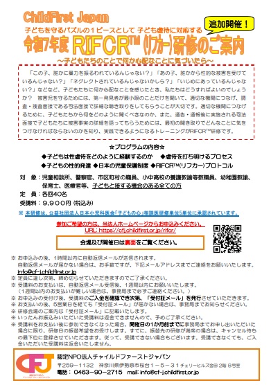 RIFCR™は、性虐待だけでなく、身体的虐待やネグレクト、いじめなどにも使っていただけます。子どもと接する職業の方はぜひ、ご参加ください。